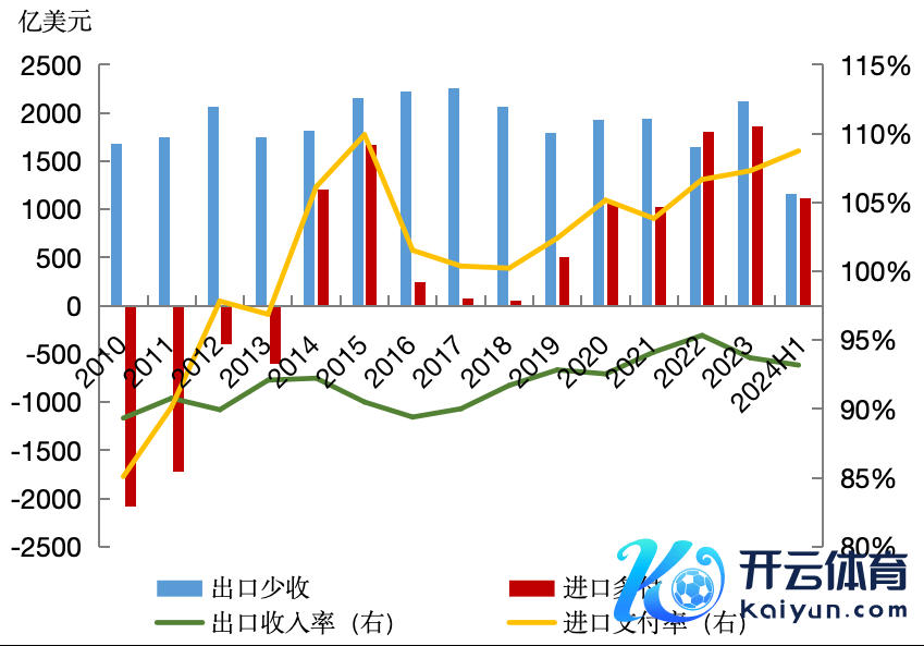 以“净差错与遗漏”为中介,容易发现顺收顺差与汇率预期之间也存在高度一致性。不难假想,在本币贬值预期下,出口主体老是倾向于将收入留存境外,阐述为出口少收;而进口主体则倾向于尽快对外付款,阐述为进口多付,反之也是。从这个角度贯通,顺收顺差毅然成为了企业杀青跨境老本离间的迫切载体。拆分来看,中国存在永劫刻的出口少收和进口多付局面。2010年至2023年,海关可比口径的货品营业收入年均低于出口金额1941.6亿好意思元,孝敬了顺收顺差总缺口的85.3%;同期,海关可比口径的货品营业支拨年均高于进口金额334.9亿好意思元,孝敬了缺口剩余的14.7%。可见,出口收汇异象是形成货品营业顺差不顺收的主要原因。这少量在出口收入率上阐述得更为显着,2010年以来持续位于100%下方窄幅波动,年均仅91.8%,标明约8.2%的出口最终莫得带来收入,而进口支付率年均约101%,支拨与进口规模大体相当。