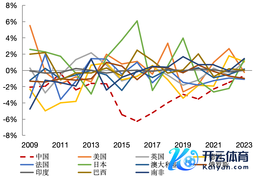从横向看,与大家其他主要经济体不同,中国的“净差错与遗漏”呈现出典型的偏态散播。据统计,2009—2023年,岂论所以好意思国、德国、日本等为主要代表的发达经济体,还所以俄罗斯、印度、巴西等为主要代表的新兴经济体,其“净差错与遗漏”均阐述为显着的立时散播,且占比基本限度在±5%以内。如图2所示,在不雅察期内,其他主要经济体中仅好意思国和日本曾分别于2009年和2016年少顷突破过5%,其余时刻均清雅围绕水平轴作凹凸立时舞动;而中国在除2015—2020年外的大齐期间,虽与其他经济体的偏离幅度无权贵各别,但却不具备上述围绕零值的立时波动特征,这少量在高频的季度数据对比中将泄漏得更为权贵。