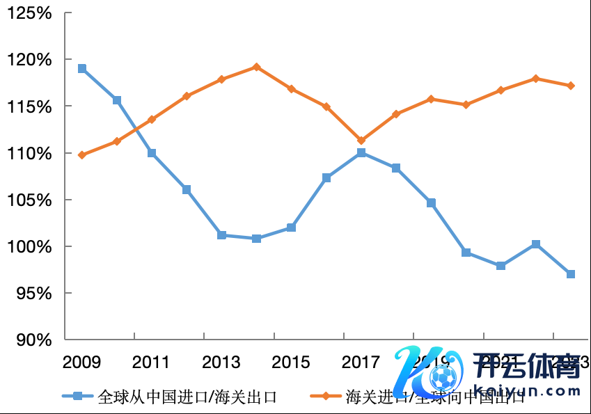 前述分析已将“净差错与遗漏”的主要陈迹指向出口少收,但进一步追问,究竟是出口被高估照旧收入被低估,仍需提供更进一步的笔据方能回复。在梦想情形下,一国出口例必等于异国来自该国的进口总和。实验中,列国一般受命出口以离岸FOB计价、进口以到岸CIF计价(含国际运保费)的国际常规,因此营业伙伴统计的源自中国的进口金额(CIF)理当高于中国统计的出口金额(FOB)。国际运保费占比一般不低于4%,若两者各别过小,甚或出现倒挂,标明至少有一方统计存在偏差。据IMF数据自大,大家其他国度自中国的进口总和与中国统计的出口总和之间的各别权贵减弱,两者之比由2009年的119%骤降至2013年的101.2%,并于2020年头次跌破100%,2023年创历史新低的97%。与之形成赫然对比的是,中国统计的进口总和与大家其他国度对中国的出口总和之比永恒看护在110%的上方,且莫得阐述出显着的趋势性。因此,若仅有出口数据出现表里倒挂,则绝非正常局面,自大海关出口数据可能存在高估。需阐发的是,在判断出口可能被高估的同期,并不可得出收入莫得被低估的论断,但站在净额统计的态度,咱们有把抓说收入比较出口不存在高估。