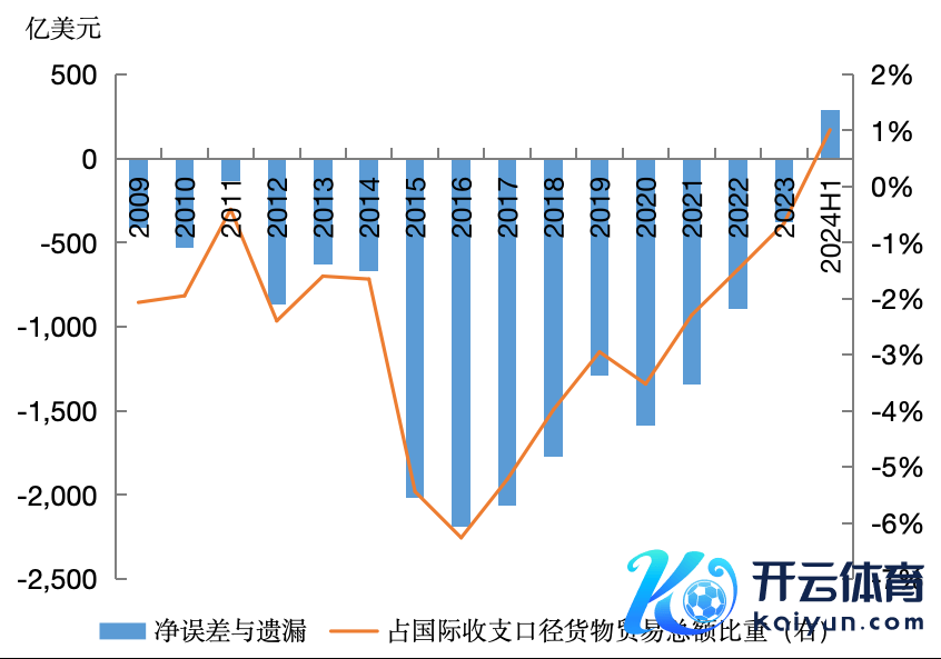 从纵向看,2009年以来,中国的“净差错与遗漏”持续呈面前借方,其中2015年以前均保持在负千亿好意思元以内,但而后规模运行快速攀升。特别是2015年至2017年,中国的“净差错与遗漏”分别达到-2018亿、-2186亿和-2066亿好意思元,占国际收支口径的货品营业总和比重团结额外5%的国际劝诫线,2016年至2019年致使还高于同期的平方账户顺差。不外,该比重在2021年以来显着趋降,2023年已降至-0.66%,致使于2024年上半年小幅转正,从头记忆基本均衡区间。但鉴于中国对外营业规模日益广漠,2021年至2023年累计“净差错与遗漏”仍高达-2617亿好意思元,导致市集对隐性老本外流的担忧挥之不去。