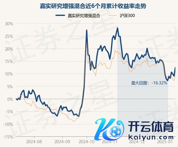 本站音书,1月13日,嘉实征询增强搀杂最新单元净值为1.267元,累计净值为1.267元,较前一来当年下落0.71%。历史数据表露该基金近1个月下落7.45%云开体育,近3个月下落2.16%,近6个月高潮9.04%,近1年高潮5.94%。该基金近6个月的累计收益率走势如下图: