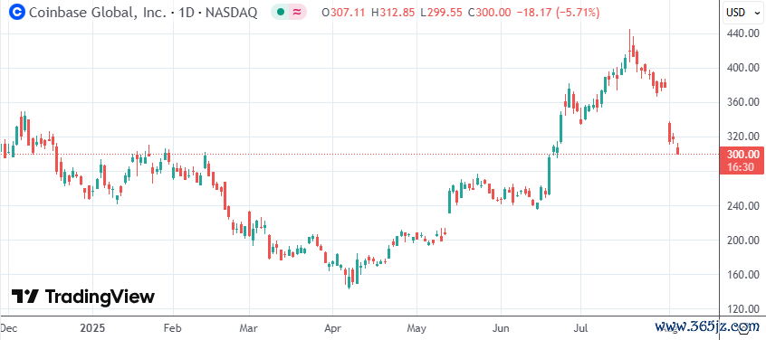 因营收不足预期、加密阛阓波动性收缩,Coinbase股价上周累计下落19.65%。固然公司Q2营收同比增长3.3%,达到15亿好意思元,但低于分析师预期的15.9亿好意思元和Q1的20亿好意思元。