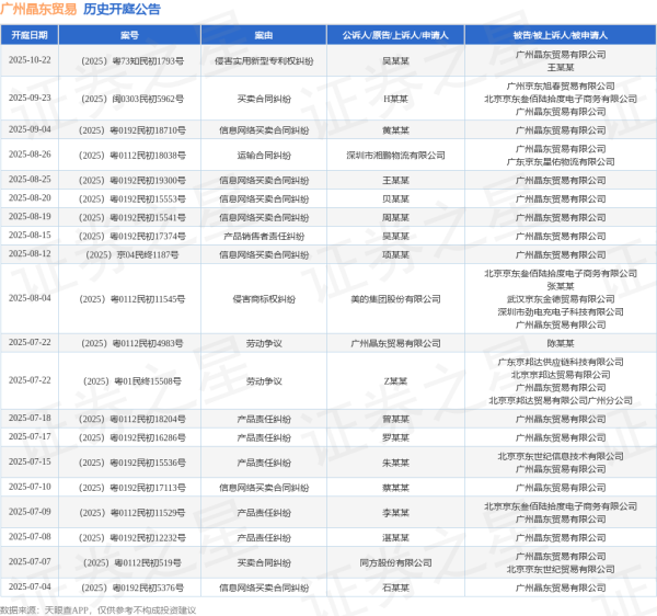 本站音信,笔据天眼查APP闪现,近日公布了一则广州晶东买卖有限公司算作被告/被上诉东说念主的开庭公告,小心实质如下: 案号:(2025)京04民终1187号审理法院:北京市第四中级东说念主民法院案由:信息聚集买卖左券纠纷当事东说念主信息:原告/上诉东说念主:项某某被告/被上诉东说念主:广州晶东买卖有限公司开庭日历:2025年8月12日 笔据统计,近一年内以广州晶东买卖有限公司为当事东说念主的历史开庭公告有140则,其中案由为“信息聚集买卖左券纠纷”的公告以49则居首,其次为“......【更多...】