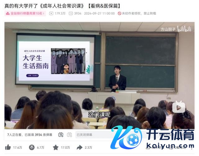 而 2024 年,南京传媒学院还开设了一门名为《大学生生活指南》的公选课,讲课东说念主不异在 B 站发布了完好意思的摄像,包括看病、社保、租房、如何乘坐高铁飞机等诸多生活知识。值得一提的是,这部视频还曾登上过全站排名榜第十名,播放量也不俗。