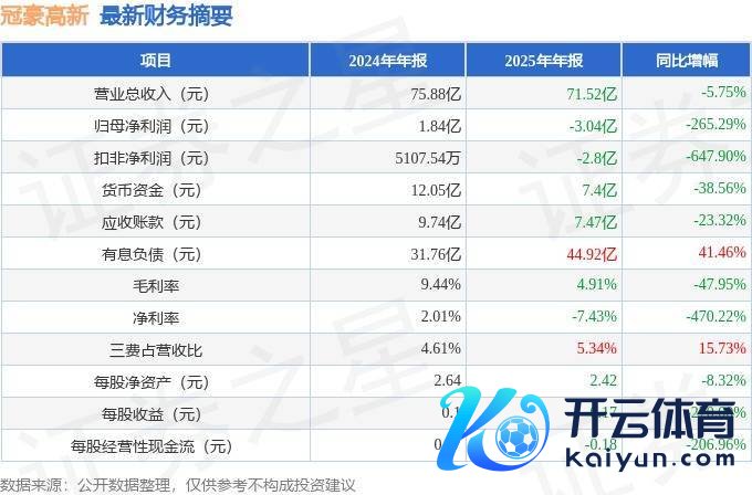 据证券之星公开数据整理,近期冠豪高新(600433)发布2025年年报。左证财报泄露,冠豪高新净利润同比下落265.29%。适度本汇报期末,公司营业总收入71.52亿元,同比下落5.75%开云登录入口登录APP下载(中国)官方网站,归母净利润-3.04亿元,同比下落265.29%。按单季度数据看,第四季度营业总收入19.18亿元,同比下落14.8%,第四季度归母净利润-2.09亿元,同比下落284.07%。