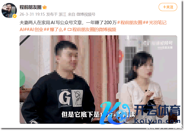 3月底, 程前一又友圈推了一双买卖博主鸳侣,堪称“用AI写公众号著作能年赚200万”,其后上了热搜,全网爆了。