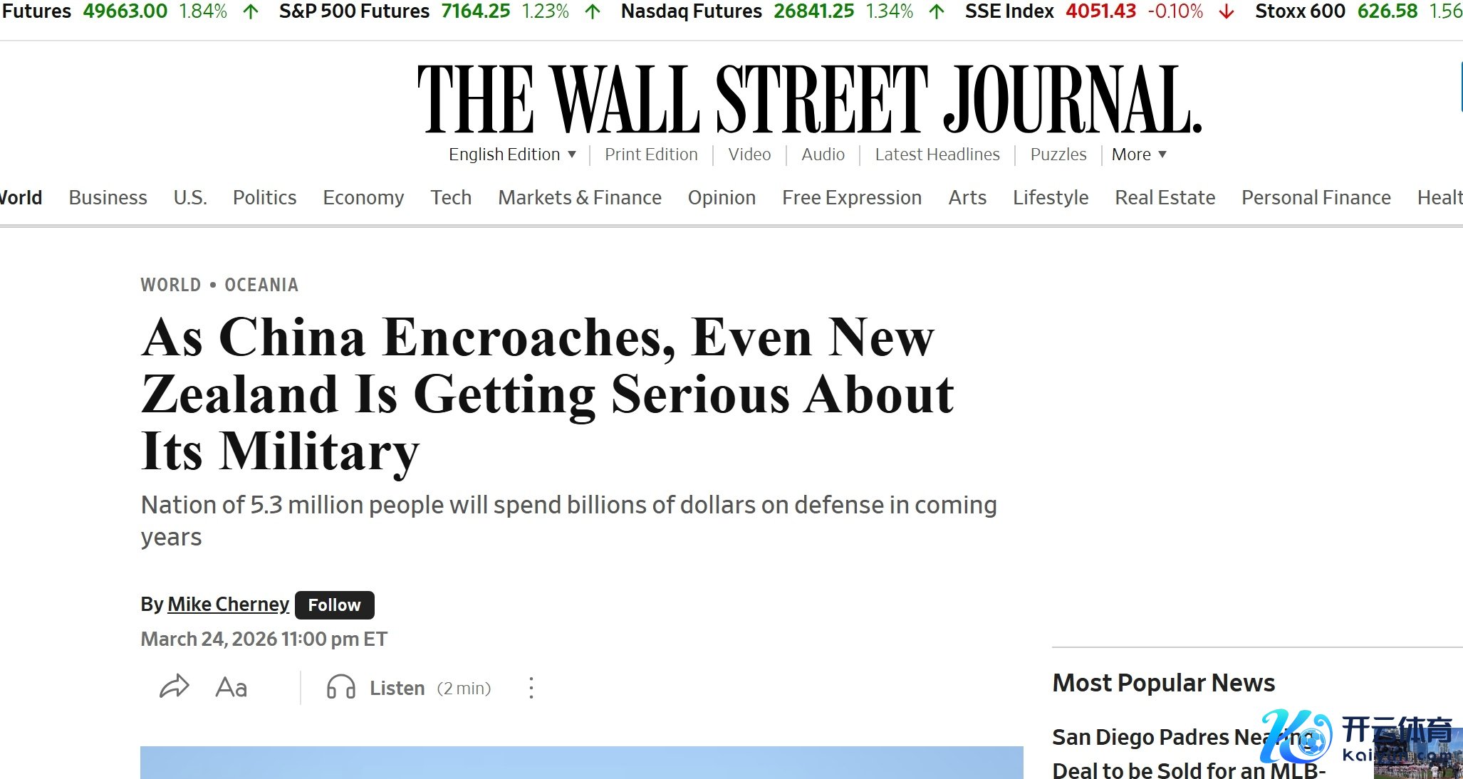《华尔街日报》在这篇名为“跟着中国的膨大,甚而新西兰也运转崇拜对待其军事问题”的著作中贯通: